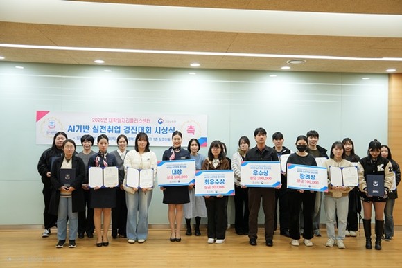 대학일자리플러스센터에서 지난 30일, ‘2025학년도 AI기반 실전취업 경진대회 시상식’을 개최했다. 학생들의 AI 활용 취업 역량 강화와 실전 취업 경쟁력 제고를 목표로 입사지원서 작성 분야와 셀프 면접 분야로 나누어 진행됐다.