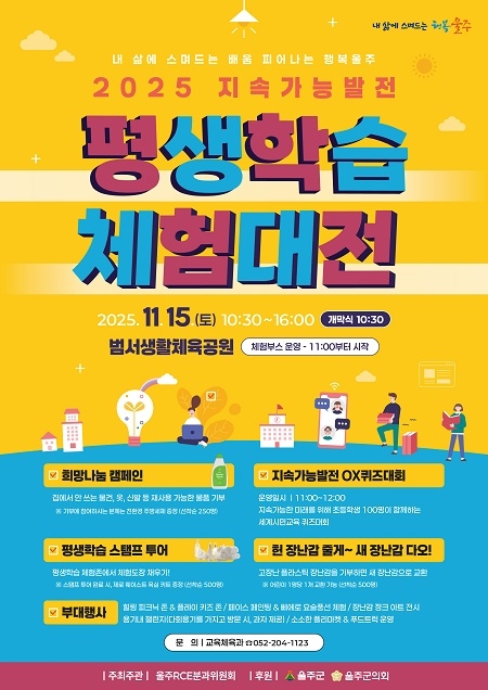 울산 울주군이 오는 15일 범서생활체육공원에서 ‘2025 울주 지속가능발전 평생학습체험대전’을 개최한다고 10일 밝혔다.