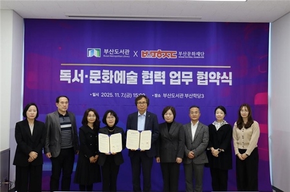 부산문화재단은 지난 7일 부산도서관과 시민의 일상 속 독서문화 진흥과 문화예술 향유 기회 확대를 위해 ‘독서·문화예술 협력 업무협약(MOU)’을 체결했다고 밝혔다.