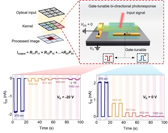 이번 연구에서 개발된 소자는 전원 없이도 빛에 의해 스스로 전류를 생성하며, 게이트 전압 조절을 통해 전류의 극성(양↔음)을 전환할 수 있는 것이 특징이다. 이러한 양·음 광전류 전환(polarity switching) 기능은 신호의 가중치를 조절하거나 이미지 필터링 연산에 활용할 수 있어, 기존 이미지 센서와 달리 감지와 계산을 하나의 장치에서 동시에 수행할 수 있는 기반을 마련했다.