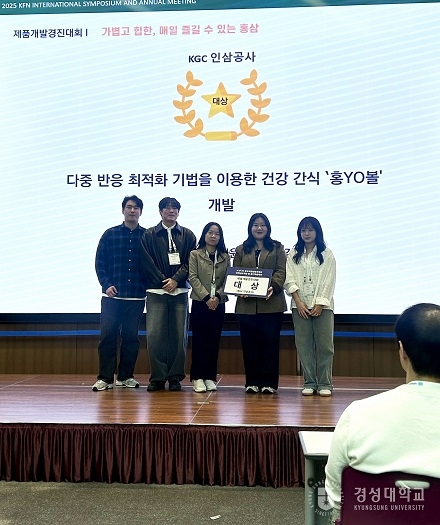경성대학교는 식품생명공학과 연구동아리 FC408 팀이 최근 해운대 벡스코에서 개최된 ‘2025 식품영양과학회 제품개발경진대회’에서 대상을 수상했다고 14일 밝혔다.