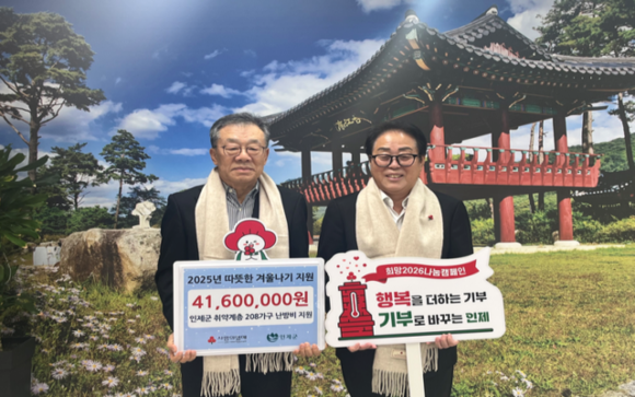 강원사회복지공동모금회(회장 유계식)는 25일 인제군청을 방문해 인제지역 취약계층이 따뜻한 겨울을 보낼수 있도록 써달라며 '2025년 따뜻한 겨울나기' 지원금 4160만원을 최상기 군수에게 전달했다. 전달된 지원금은 인제지역 취약계층 208가구에 각각 20만원씩 전달될 예정이다.