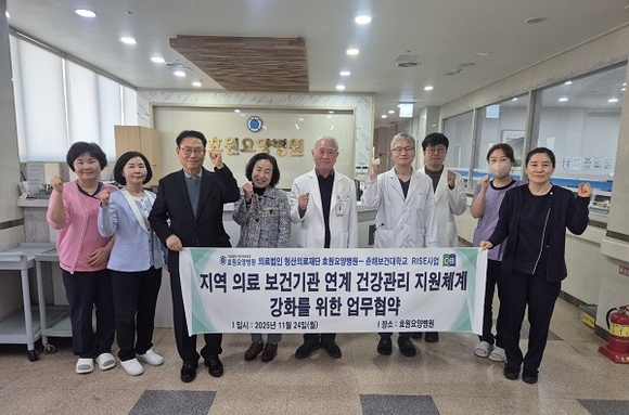 이번 협약은 2025년 지역혁신중심대학지원체계(RISE) 사업의 D1 단위과제 ‘지역 친화형 통합 건강관리 지원체계 강화’의 일환으로, 지역 의료·보건기관 간 협력 기반을 강화하고 의료취약계층을 포함한 지역 주민의 건강관리 서비스 접근성을 높이는 것에 목적이 있다.