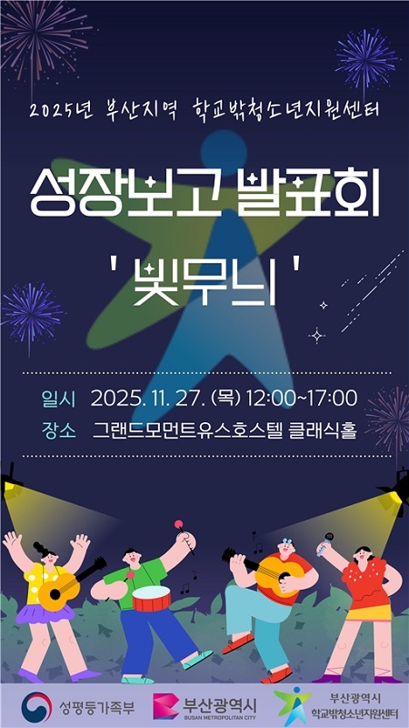 부산시는 27일 남구 그랜드모먼트 유스호스텔에서 2025년 부산지역 꿈드림 성장보고 발표회 '빛무늬'가 열린다고 밝혔다.