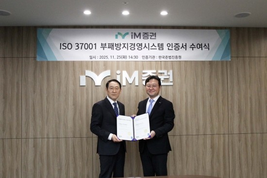iM증권이 한국준법진흥원으로부터 부패방지경영시스템인 ISO 37001 인증을 획득했다.