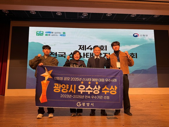 이강성 산림소득과장은 “이번 수상은 광양시의 체계적인 산사태 예방·대응 노력과 유관기관, 주민들의 적극적인 협력이 만들어낸 결실”이라며 “앞으로도 시민의 소중한 생명을 지키기 위해 대응 역량을 지속적으로 강화해 나가겠다”고 밝혔다.