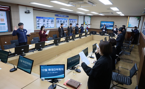 창원시설공단은 2일 1층 상황실에서 확대간부회의에 앞서 ‘인권경영 선언 및 서약’ 행사를 가졌다고 밝혔다.