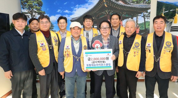 원통대승라이온스클럽(회장 이성원)은 3일 인제군청을 방문해 이웃돕기 성금 200만원을 최상기 군수에게 기탁했다.