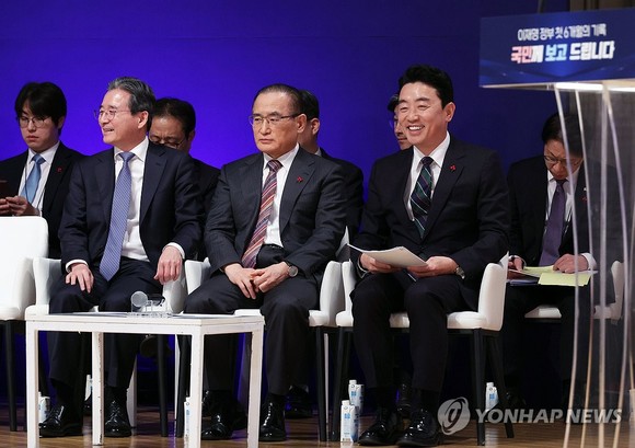 대통령실은 6일 용산 대통령실에서 ‘이재명 정부 6개월 성과 보고 기자간담회’를 열었다. 이례적으로 일요일에 열린 이 간담회에는 강훈식 비서실장, 위성락 국가안보실장, 김용범 정책실장 등 이른바 ‘3실장’이 모두 참석했다.