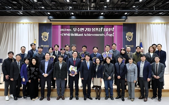 국립창원대학교는 지난 23일 대학본부 2층 인송홀에서 '2025학년도 국립창원대학교 우수연구자 울프상[CWNU WOLF(World-class Outstanding Leading Faculty) Awards] 시상식'을 가졌다.