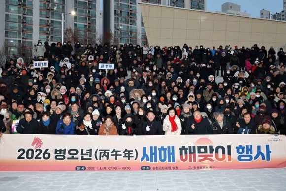 인천 동구는 지난 1일, 송현근린공원에서 각 동 주민자치회, 자생단체 회원 등 다수의 구민이 참여한 ‘2026년 병오년 새해 맞이’ 행사를 개최했다고 밝혔다.