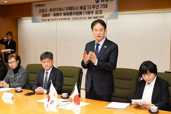 고양시는 13일, 일본 하코다테시를 찾아 자매도시 결연 15주년을 기념하고 교육·청년 정책을 축으로 한 협력 과제를 논의했다. 시는 하코다테시청 공식 면담과 기념패 교환에 이어 현지 대학을 방문해 청년 교류와 연구 협력 가능성도 점검했다.