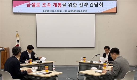 부산시의회 복지환경위원회 소속 이준호·이종진 의원은 19일 오후 시의회 중회의실에서 ‘금샘로 조속 개통을 위한 전략 간담회’를 열고, 장기간 지연되고 있는 금샘로 도로공사의 원인을 점검하며 실질적인 해결 방안을 논의했다.