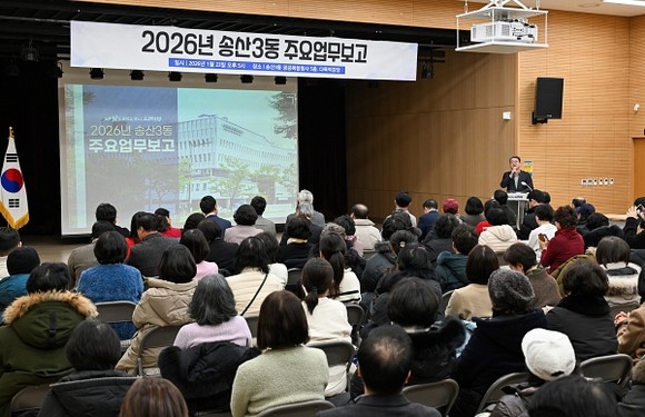 의정부시 송산3동 행정복지센터가 새해를 맞아 지역 주민들에게 향후 사업 계획을 상세히 설명하고 현장의 목소리를 직접 청취하는 소통의 장을 마련했다. 센터는 주민과 관계자 등 100여 명이 참석한 가운데 ‘2026년 송산3동 주요업무보고회’를 성황리에 개최했다고 밝혔다.