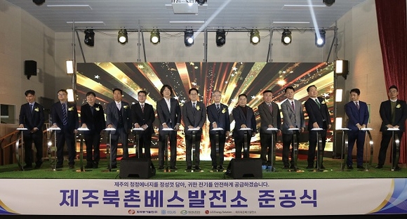 한국동서발전㈜은 27일 오후 제주시 북촌초등학교 실내체육관에서 ‘제주북촌 배터리에너지저장장치(BESS) 발전소’ 준공식을 열고, 제주 전력계통 안정화를 위한 핵심 기반시설의 운영을 본격화했다고 밝혔다.