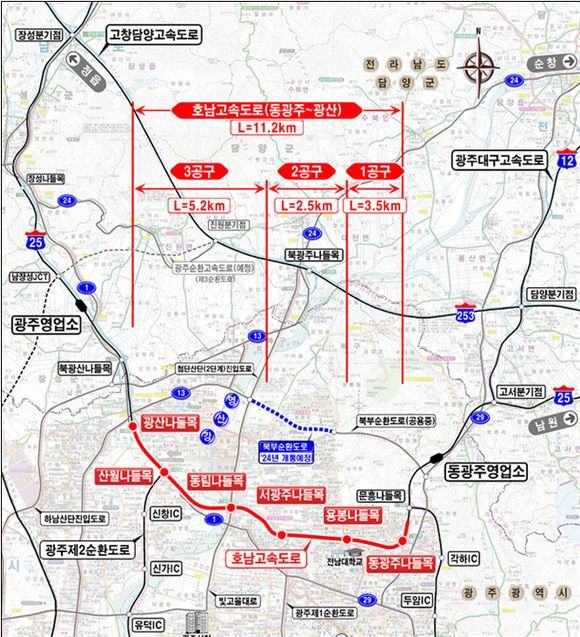 호남고속도로 동광주IC~광산IC 구간 확장공사위치도. (사진=광주시)