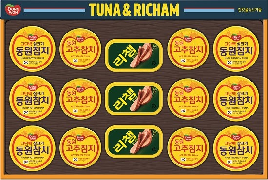 동원F&B는 참치캔 1등 브랜드 ‘동원참치’만으로 구성한 선물세트의 물량을 약 20% 확대 운영한다. 한 캔(135g)에 성인 단백질 일일 권장량(55g)의 절반 수준인 25g의 단백질이 들어있는 고단백 ‘라이트 스탠다드’를 비롯해 부재료와 함께 다양한 맛을 구현한 가미참치(고추·야채참치 등) 등을 조합한 다양한 참치 선물세트를 선보인다. 또한 올리브유에 고급 어종인 황다랑어를 담은 ‘올리브참치’도 참치 선물세트에 함께 담아 건강성을 더했다.