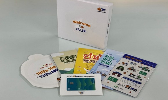 군장병이 지역 생활에 빠르게 적응하는 데 필요한 정보와 혜택을 안내하고 전입신고를 유도하기 위한 웰컴박스에는 전입 혜택과 고향사랑기부제, 관광·맛집 정보 등 홍보물과 인제군 지역화폐 '인제채워드림카드'가 들어있다.