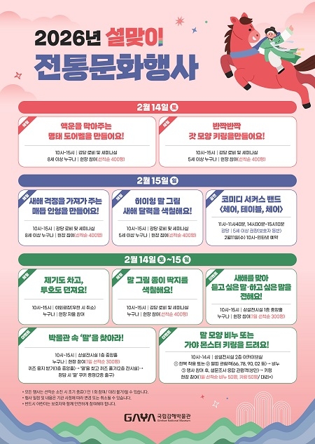 국립김해박물관은 병오년 설날을 맞이해 오는 14일부터 15일까지 박물관 일원에서 ‘설맞이 전통문화행사’를 개최한다고 2일 밝혔다.