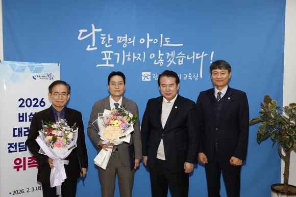 광주시교육청(교육감 이정선)은 3일 본청 교육감실에서 노강규, 현길환 변호사를 ‘비실명 대리신고 전담 변호사’로 위촉했다.