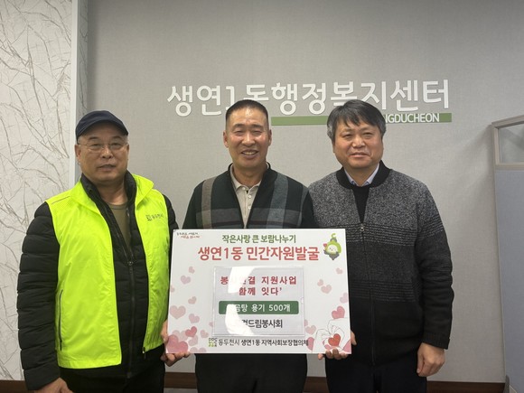 동두천시 생연1동 지역사회보장협의체가 봉사단체의 활동을 안정적으로 이어가도록 돕는 ‘봉사연결 지원사업 함께 잇다’를 추진했다. 협의체는 지난 9일, 생연1동 저소득층 등 20가구에 닭곰탕을 지원하는 로컬드림봉사회에 닭곰탕 용기 500개를 전달했다.