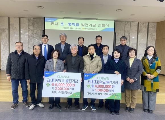 부산 대저농협은 지난 11일 당사 대회의실에서 조합원 손자녀 장학금 및 관내 초등·중학교에 대한 학교발전기금 전달식을 가졌다고 12일 밝혔다.