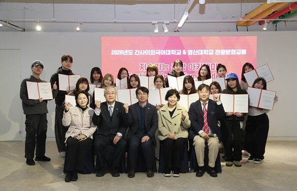영산대 관광문화예술대학과 부산RISE사업단은 지난 11일 해운대캠퍼스 학천홀에서 ‘2026 간사이외대 & 영산대 관광문화교류 단기 프로그램(STA 3기)’ 수료식을 개최했다고 13일 밝혔다. 이번 프로그램은 지난달 일본 간사이외대와 체결한 ‘글로벌 관광교육동맹’ 업무협약의 일환으로 마련된 첫 번째 실질적인 글로벌 교육 성과다.
