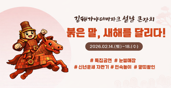 (재)김해문화관광재단이 운영하는 김해가야테마파크가 오는 14일부터 18일까지 설날 특집 행사 ‘붉은 말, 새해를 달리다’를 개최한다.