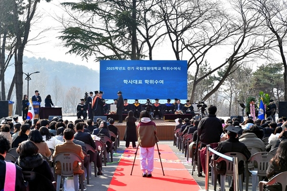 국립창원대학교는 13일 도서관 옆 야외행사장에서 2025학년도 전기 학위수여식을 열고, 학사 1328명, 석사 259명, 박사 53명 등 모두 1640명에게 학위를 수여했다.