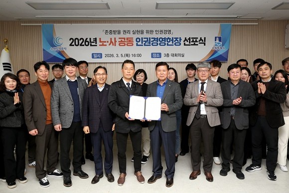 수원도시공사는 5일 오후, 더함파크 대회의실에서 ‘2026년도 노·사 공동 인권경영헌장 선포식’을 가졌다.