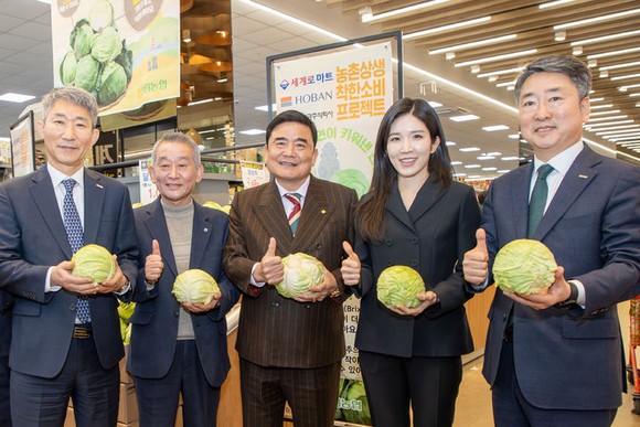 호반프라퍼티와 호반그룹 계열 도매시장법인 대아청과는 농어촌상생협력기금을 활용해 제주 한림농협이 재배한 달코미 양배추 1만통을 농가로부터 구매해 전국 14개 세계로마트 매장에 공급, 할인 판매 행사를 열었다.