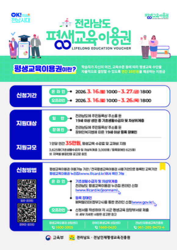 이용권 관련 자세한 문의는 평생교육 이용 상담센터나 전남인재평생교육진흥원으로 하면 된다.