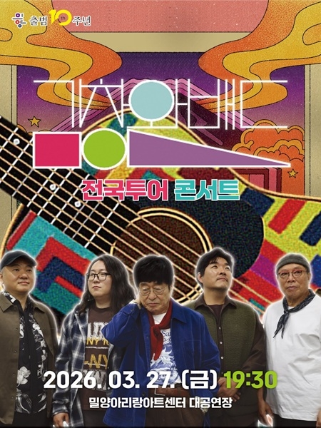 밀양문화관광재단이 오는 27일 밀양아리랑아트센터 대공연장에서 재단 출범 10주년을 기념하는 특별 공연 '김창완밴드 전국 투어 콘서트'를 연다.