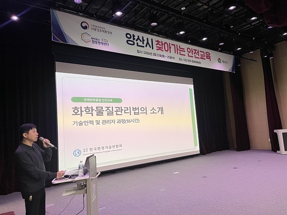 신석효 환경관리국장(청장 직무대리)은 “이번 찾아가는 안전교육이 양산지역 중소기업의 화학안전관리 역량 강화에 실질적인 도움이 되기를 기대한다”며 “앞으로도 화학안전 취약지역과의 지속적인 소통을 통해 중소사업장의 안전관리 수준을 높여 나가겠다”고 밝혔다.