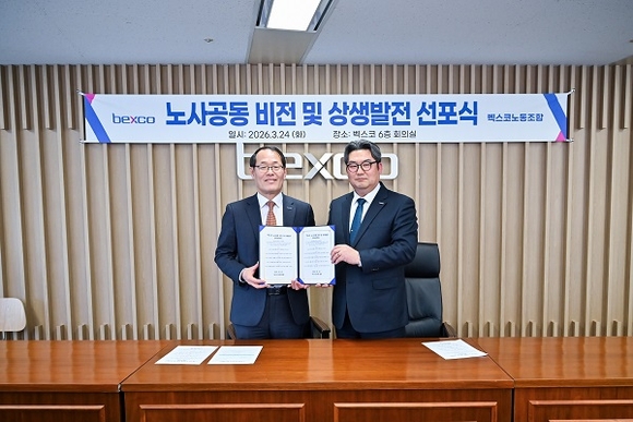 박정호 벡스코 노동조합 위원장도 “노사 상생은 조직과 구성원의 미래를 위한 필수 조건”이라며 “열린 소통과 참여를 통해 구성원이 체감할 수 있는 변화와 성과를 만들어 가겠다”고 밝혔다.