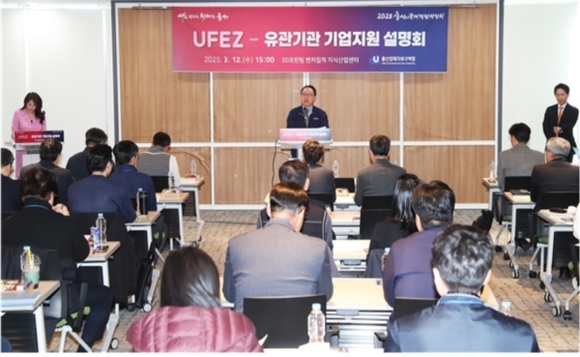 울산경제자유구역청은 25일 오후 2시 유니스트(UNIST) 산학협력관에서 ‘울산경제자유구역(UFEZ)-유관기관 기업지원 설명회’를 열었다.