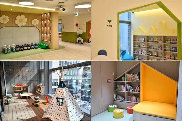 2개 층(3·4층)에 걸쳐 약 200평 규모로 조성된 리틀랩은 아이들의 놀이와 배움이 자연스럽게 이어질 수 있도록 ‘뜰’ 개념을 적용한 공간 구성이 특징이다. ▲신체 활동을 위한 ‘놀이뜰’ ▲탐색과 휴식이 가능한 ‘누리뜰’ ▲독서 공간 ‘도담뜰’ ▲자연 체험이 가능한 데크 공간 ‘마루뜰’ 등 아이 중심의 보육 환경을 갖췄다.