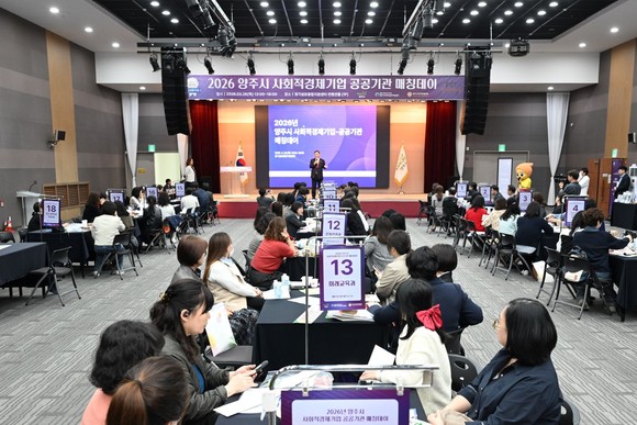 양주시는 지난 26일, 경기섬유종합지원센터 컨벤션홀에서 사회적경제지원센터와 공동으로 ‘2026년 사회적경제기업-공공기관 매칭데이’를 개최했다. 행사에는 시와 산하기관, 유관 공공기관 관계자, 사회적경제기업 종사자 등 약 200명이 참석했다.