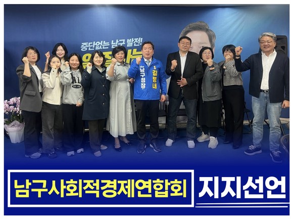 같은 날 남구 사회적경제연합회도 지지를 선언하며 세를 보탰다. 연합회 측은 “김 후보는 사회적 가치에 대한 깊은 철학을 바탕으로 취약계층 일자리 창출과 사회 서비스 확대에 힘써왔다”며, “에너지밸리 조성 등 남구의 대형 프로젝트 결실이 지역사회 구석구석 사회적 경제로 스며들게 할 비전을 가진 후보”라고 신뢰를 보냈다.