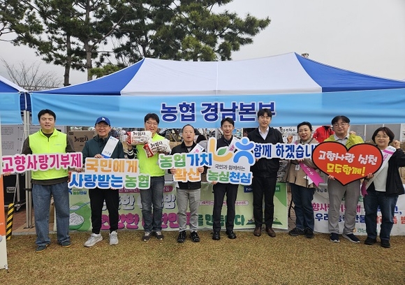 경남농협은 지난 29일 3·15해양누리공원에서 열린 제33회 3·15마라톤대회에서 ‘고향사랑기부제’ 및 ‘범국민 아침밥 먹기 운동’ 홍보활동을 펼쳤다고 30일 밝혔다.