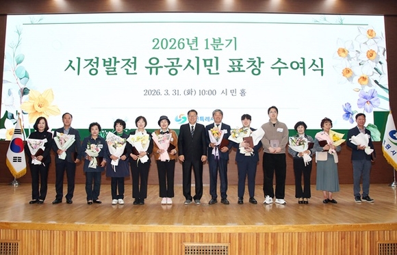 경남 창원시는 31일 오전 시청 시민홀에서 '2026년도 1분기 시정발전 유공시민 표창 수여식'을 가졌다.