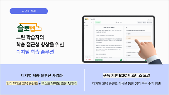 먼저, 이네이블유는 ‘느린 학습자’를 위한 맞춤형 인터랙티브(상호작용) 교육 콘텐츠를 개발한다. AI(인공지능) 기반 읽기 수준 분석 기술을 활용해 학습자의 수준에 맞는 콘텐츠를 제공하고, 콘텐츠 라이브러리 구축을 통한 디지털 교육 플랫폼을 구현할 계획이다. 특히 학습 접근성 향상과 교육 격차 해소라는 사회적 가치를 동시에 실현할 수 있는 콘텐츠 모델로 주목된다.