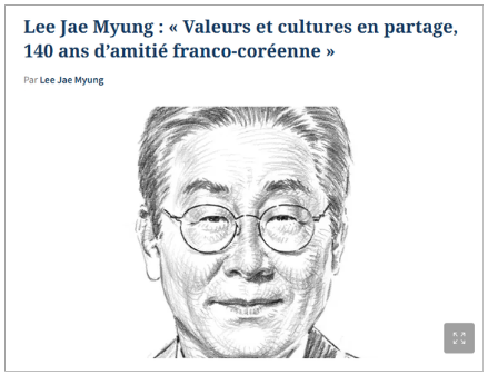 ‘가치와 문화의 공유 : 140년의 한국-프랑스 우정’ 제목의 기고문에서 이 이 대통령은 “프랑스와 한국의 우정은 단순히 기념해야 할 유산이 아니라 의식적으로 심화시켜야 할 파트너십”이라며 “양국 사회를 이어 준 연결고리는 민주주의 가치에 뿌리를 둔다. 한국의 지적-정치적 전통은 장 자크 루소와 몽테스키외 같은 사상가들의 영향을 받아왔고, 자유와 권력 분립에 대한 이들의 사유는 현대 민주주의 제도 형성에 기여했다”고 썼다.
