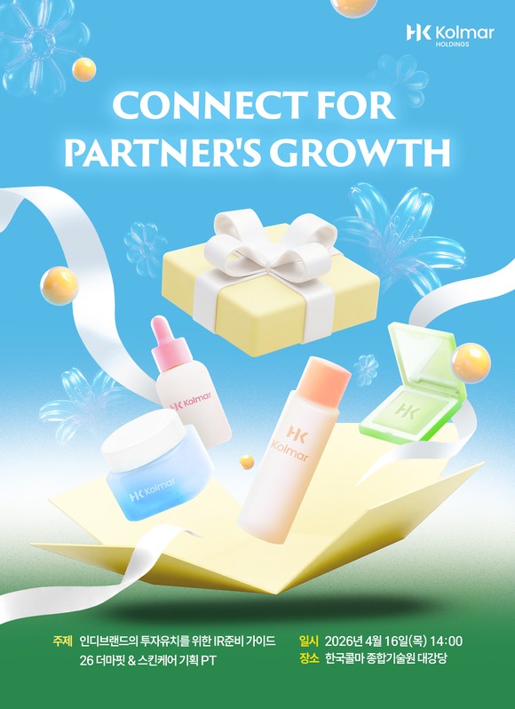 세미나는 오는 16일 서울 서초구 소재 한국콜마 종합기술원에서 진행된다. 콜마홀딩스는 ‘인디브랜드 IR 준비 가이드’와 ‘스킨케어∙더마 화장품 트렌드 및 신기술’을 주제로 강연을 제공할 예정이다.