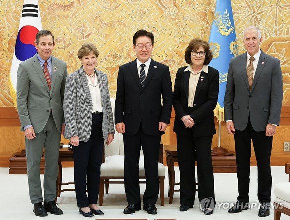 접견에는 미국 공화당에선 톰 틸리스 의원과 존 커티스 의원이, 민주당에선 진 섀힌 의원과 재키 로젠 의원이 참석했다. 제임스 헬러 주한미국대사대리도 함께했다.