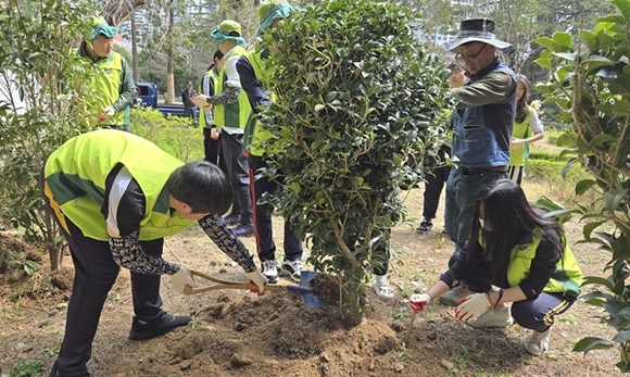 이번 행사에는 금강공원 직원과 금정산보존회 회원, 동래원예고등학교 학생 등 30명이 참여해 금목서와 은목서 등 화목류 약 300여 주를 식재하며 공원 녹지 공간 확대에 힘을 보탰다.