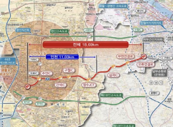 특히, 오는 2035년 기준 사업 시행 시 경인고속도로 교통량은 약 10.2%, 제2경인고속도로는 약 13.2% 감소할 것으로 예측되며, 인천항에서 강남까지 첨두시간 통행시간도 최대 25분 단축될 것으로 전망된다.