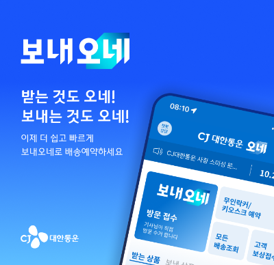 윤재승 CJ대한통운 오네(O-NE) 본부장은 “보내오네를 통해 다양한 소비자들이 일상에서 한층 더 편리한 개인 간 발송 경험을 누릴 것”이라며, “앞으로도 고객 니즈에 맞는 차별화된 서비스를 발굴해 최고의 생활물류 서비스를 제공하도록 노력하겠다”고 말했다.