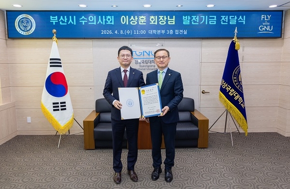경상국립대학교는 8일 오전 대학본부 3층 접견실에서 이상훈 부산시 수의사회 회장의 대학발전기금 전달식을 개최했다고 밝혔다. 이날 이상훈 회장은 경상국립대 발전과 수의과대학 학생들의 활동 지원을 위해 3000만 원을 기부했다.