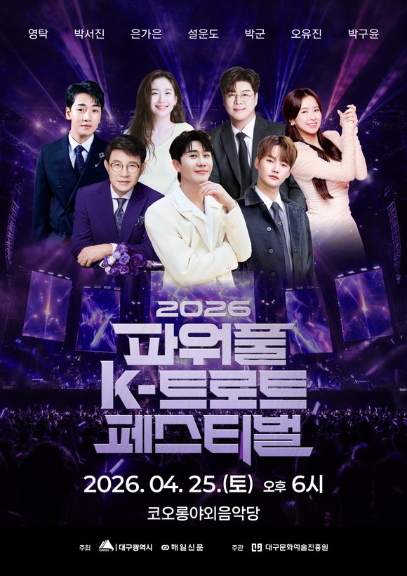 대구시는 오는 25일 오후 6시 코오롱 야외음악당에서 ‘2026 파워풀 K-트로트 페스티벌’을 개최한다. 무료로 진행되는 이번 행사는 시민들에게 활력을 주고 문화 향유 기회를 확대하기 위해 마련됐다.